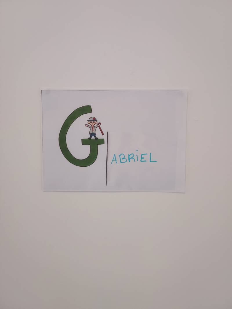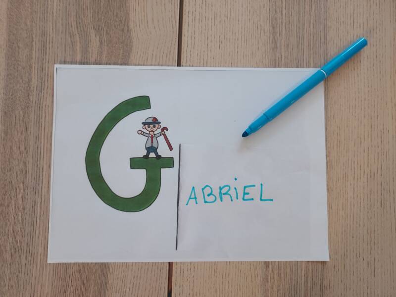 Etape 2: Choisis un joli feutre de ta couleur préférée et écris ton prénom dans l'espace dédié. Si tu ne sais pas écrire, utilise des tampons encreurs des lettres de l'alphabet.