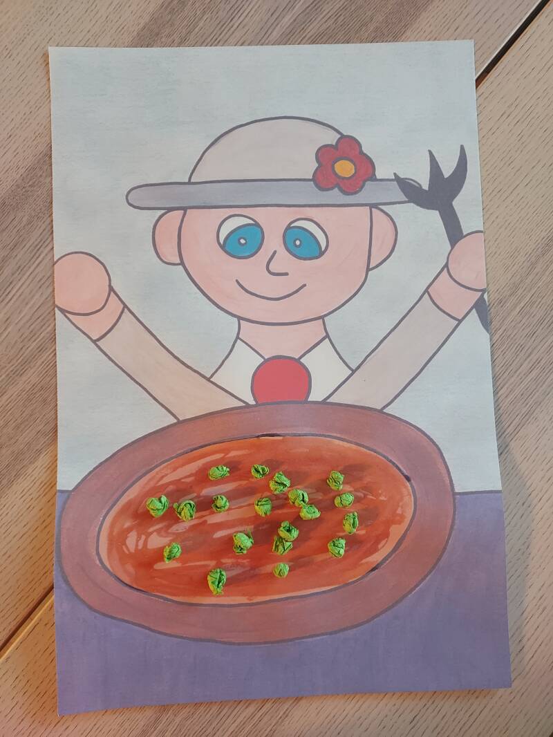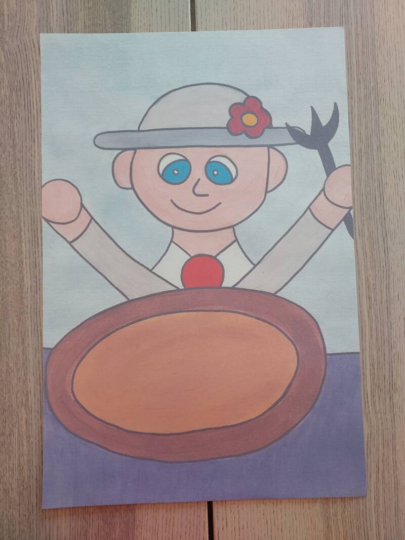 Etape 1 : Imprime le dessin de Patatouille devant son assiette vite.