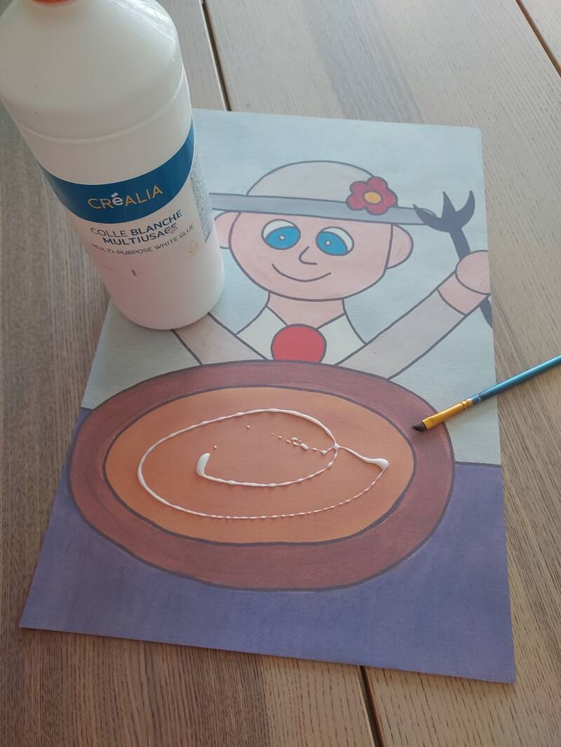Etape 3: Etale de la colle blanche dans toute l'assiette de Patatouille.